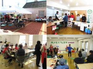 コミセンA室では多世代交流の場としてふれあい喫茶、ボラセン出張相談、けん玉教室、ストラックアウト(ボールの的当てゲーム)のイベントが開催された。恒例となったけん玉名人の難易度の高い技に会場の拍手が続いた。ストラックアウトはプロ野球独立リ-グの兵庫ブレイバーズの3人の選手たちが運営するゲームだった。
